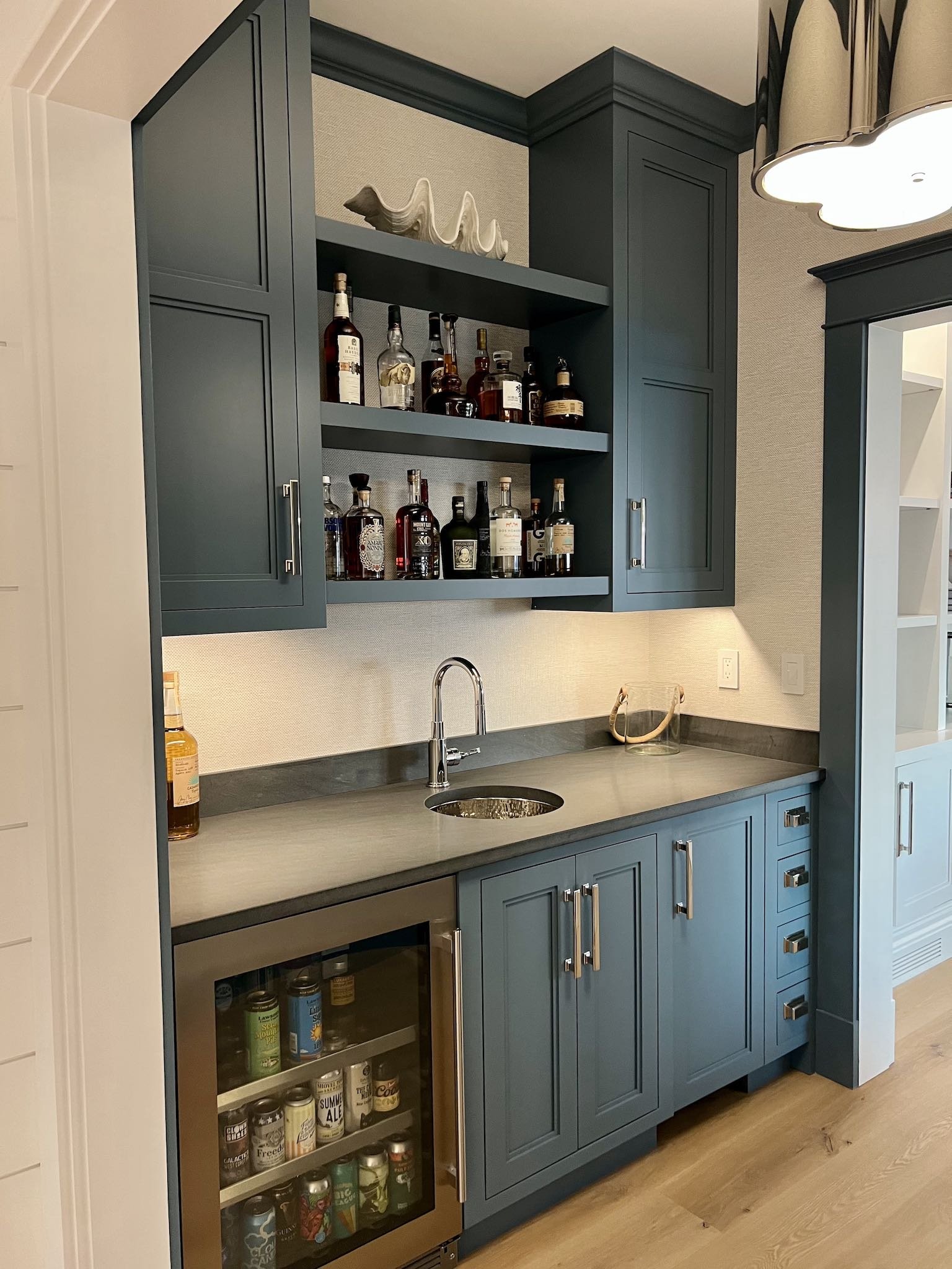 Faneuil's wet bar cabinet designs offer a blend of functionality and elegance, tailored to enhance any entertaining space.